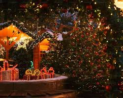 • Holiday Square: The main plaza is draped in a sea of traditional red, green, and white lights, all centered around a massive, brilliantly lit Christmas tree that serves as the park’s festive icon and the perfect photo backdrop.